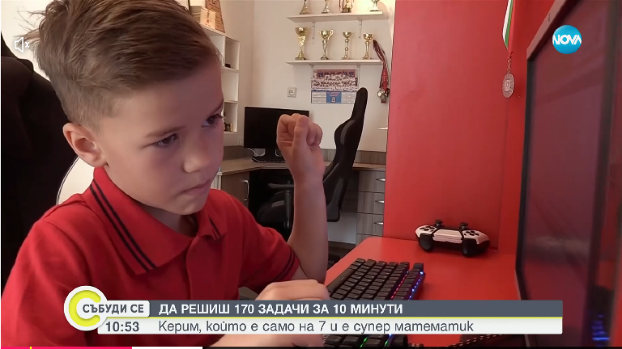 Керем вече е шампион по ментална аритметика. Състезава се с деца от цял свят в онлайн олимпиади и вече се подготвя за Олимпиада в Дубай, където ще представи България. “Хубавото е, че когато се печели взимаш купи и медали”, разказва Керем Хазим.