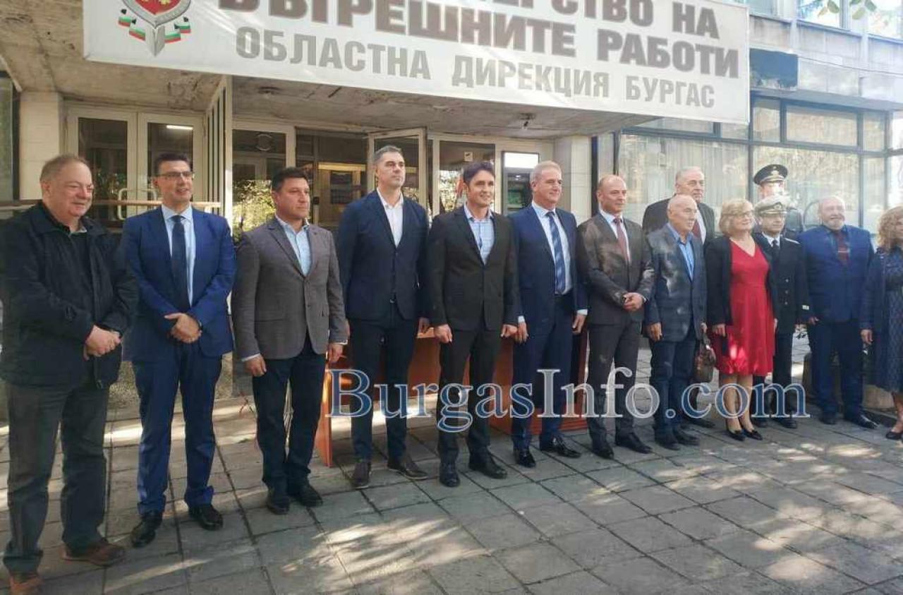 Бургаската дирекция на МВР събра бивши директори на официалната церемония по отбелязване професионалния празник на униформените полицаи – 8-ми ноември, която се състоя днес. В церемонията се включиха Аргир Бояджиев, Георги Пенев, Красимир Петров, Васил Едрев, Милен Димитров и Калоян Калоянов. „Благодарим на всички тях за огромния принос за издигане честта на полицейската професия, за упоритостта и професионализма през активните им години. Благодарим за всичко, което са дали на крайморската ни дирекция и нейния състав, за грижата, за сигурността, за реда, спокойствието и спазването на законовите принципи в държавата. Задочно отправяме благодарност и към директорите Тодор Чинев, Павлин Димитров и Радослав Сотиров, които въпреки физическото си отсъствие днес поради лични причини, засвидетелстваха интереса и ангажираността си с бургаската полицейска дирекция, както и радостта от поканата да бъдат част от днешното събитие.“, отбелязаха от ОДМВР-Бургас.