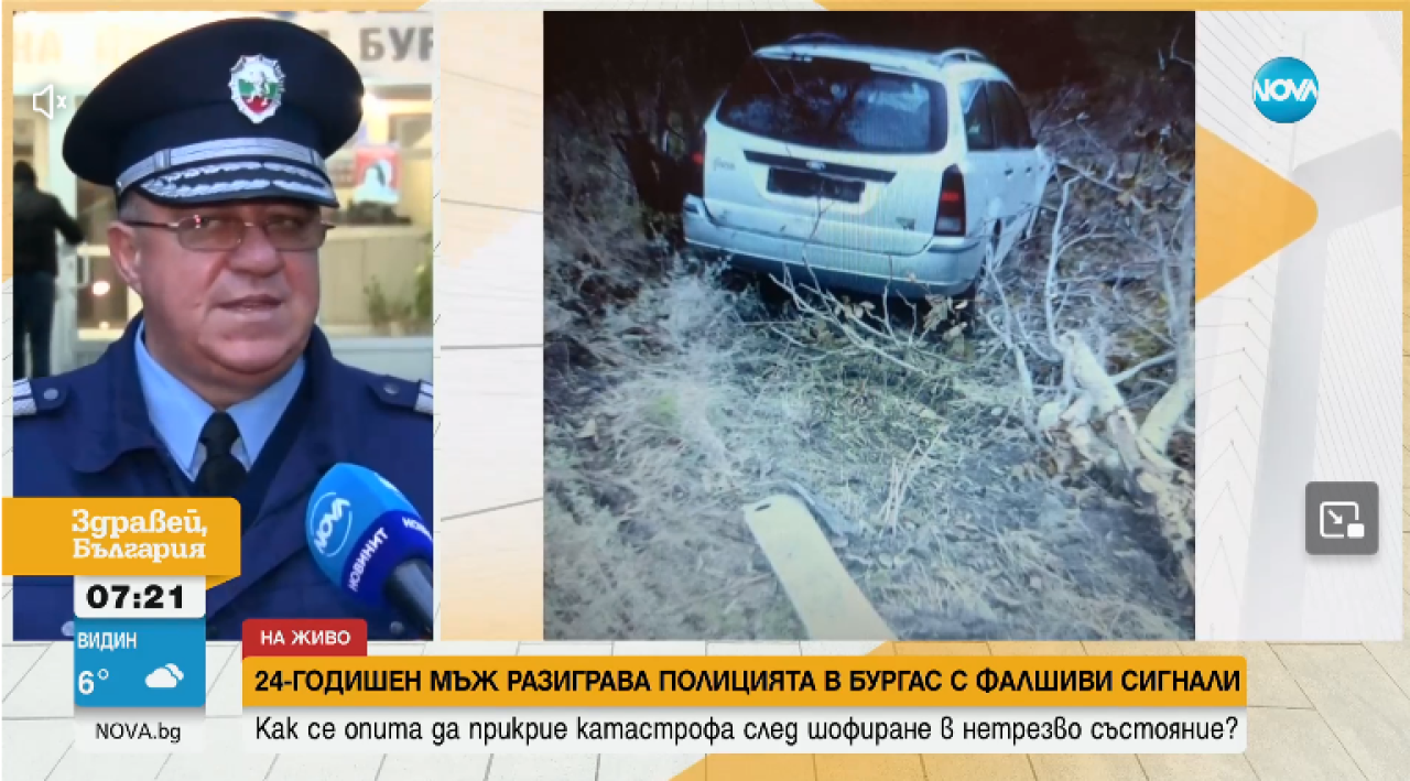 24-годишен бургазлия се опита да излъже полицията, след като извършил две престъпления в рамките само на половин час. Първо подал сигнал, че автомобилът му е откраднат, а по-късно съобщил, представяйки се под друга самоличност, че колата му е открита катастрофирала, но без регистрационни номера.