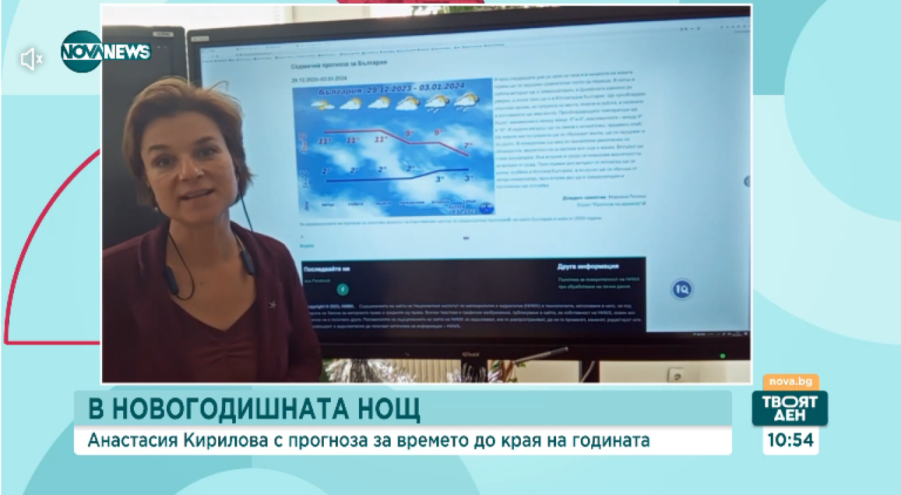 Времето през последните дни на годината ще бъде предимно слънчево. Сутрин в низините и котловините ще има мъгли. В югозападните райони ще бъде почти тихо. Температурите ще са от -1 до 14 градуса. В първите дни от новата година няма да има съществена промяна. Това каза синоптикът Анастасия Кирилова в ефира на предаването “Твоят ден” по NOVA NEWS.