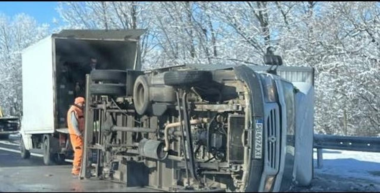 Бус-се-обърна-на-АМ-„Тракия“-на-108-км.-посока-София