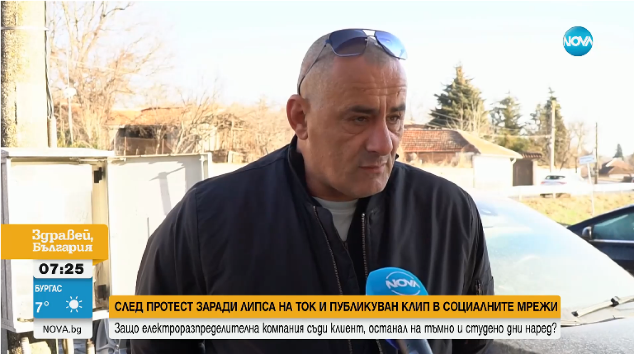 Енергодружество съди свой абонат за публикуван клип във Facebook, съобщава NOVA. Снежната буря в края на ноември миналата година остави много населени места без ток. Едно от тях беше русенското село Червена вода. Екипи на „ЕНЕРГО-ПРО” възстановили захранването, но само на част от селото. В района, където живее Георги Георгиев, къщите дни наред били без електричество. В същото време търпял и загуби, защото бизнесът му също зависел от електричеството. Затова той отишъл в клиентски център в Русе, настоял да му бъде пуснат токът, поискал обезщетение и снимал с телефона си целия разговор.