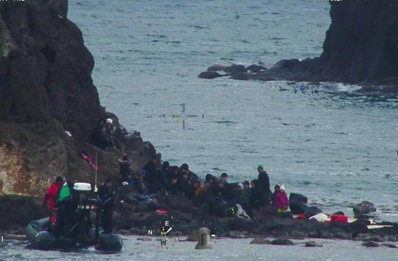 На 7 февруари сутринта граничният полицейски кораб „Балчик“ получава информация за бедстващи мигранти на скалистия остров Панагия, североизточно от остров Лесбос. Екипажът на кораба веднага започва операция по търсене и спасяване. С две бордови лодки граничните полицаи се отправят към скалата, където бедстват 10 деца, 15 жени и 19 мъже, съобщават от МВР.