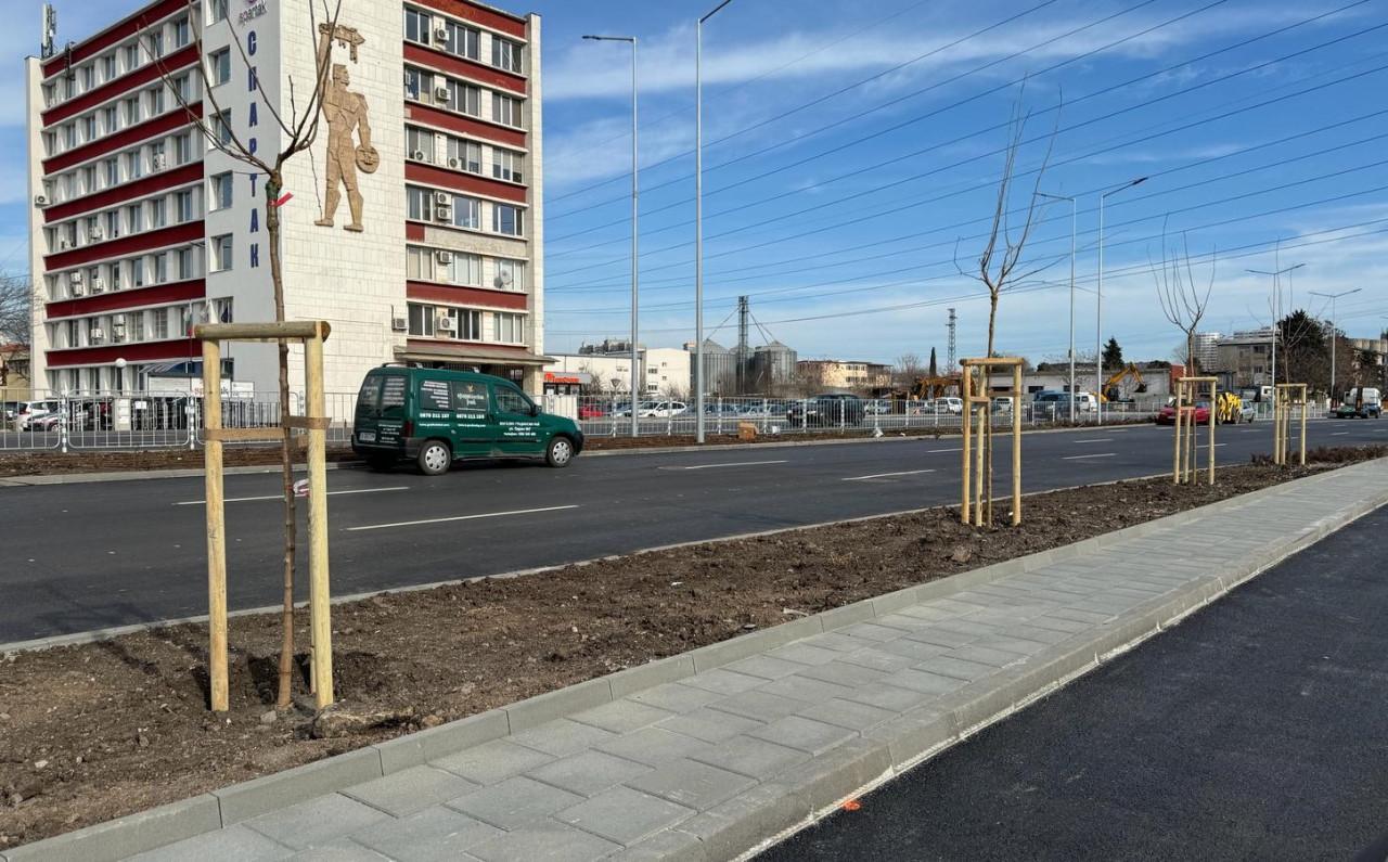Отстрани на улицата са засадени 131 широколистни дървета от видовете южна копривка, източен платан и нов вид декоративна черница, която не образува капещи и цапащи плодове.