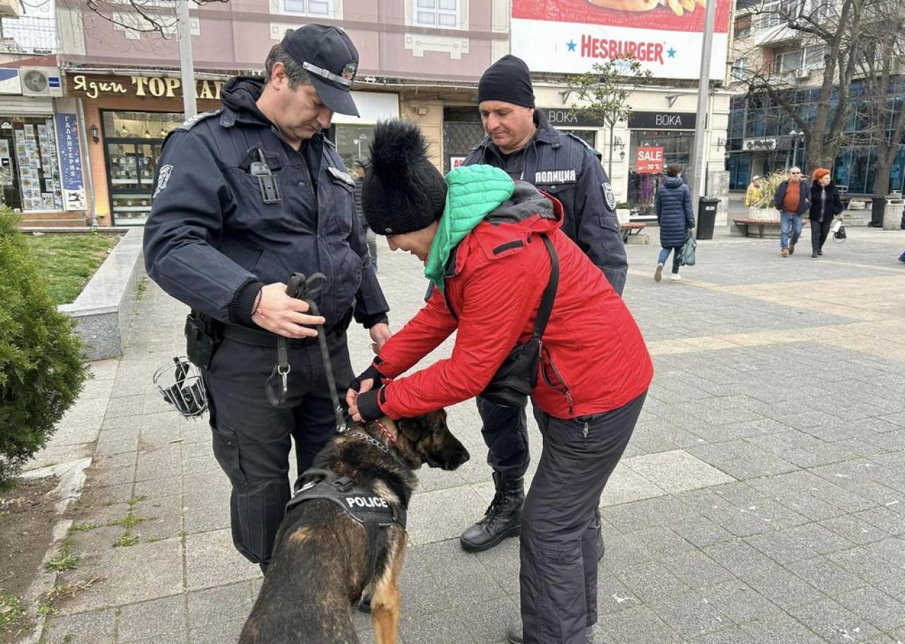 Най-милия и затрогващ жест към патрулиращия полицейски екип, съпровождан от служебното куче Бим, направи днес бургазлийката Донка, продаваща красивите си мартенички на площад “Тройката” в Бургас. С пожелание за здраве и късмет Донка спонтанно подари на спецполицаите по една ръчно изработена мартеница, а Бим получи своята редом със служебния елек!!
