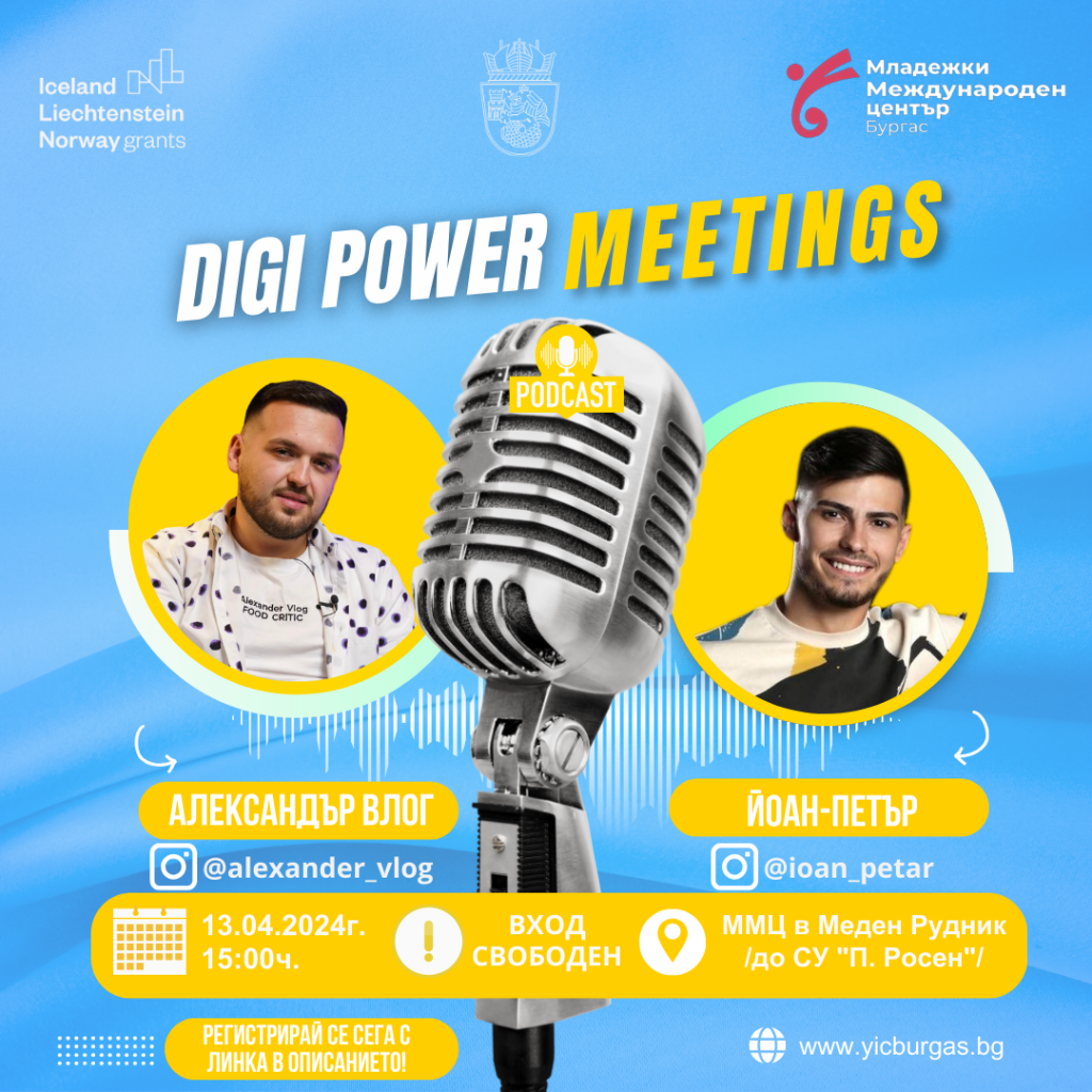 Уъркшопът е първи по рода си за Бургас и ще бъде с участието на едни от най-обичаните и популярни сред младежката аудитория инфлуенсъри: Йоан-Петър и Александър Vlog. Домакин е Младежкият международен център, а събитието, което е част от поредицата вдъхновяващи срещи DIGI POWER MEETINGS, ще се проведе от 15.00 часа тази събота /13 април/.